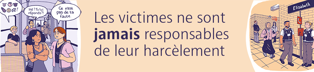 Vous avez le droit de vous sentir en sécurité et respectée. Si vous rencontrez l'un de ces indicateurs, n'hésitez pas à signaler le comportement à des agents de la STIB ou à la police.